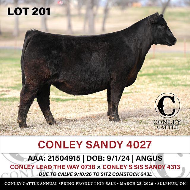 Back to Directory View Sale Catalog Request Sale Videos Conley Cattle Kyle Conley 3555 Koller Rd. Sulphur, OK 73086 conleycattle@yahoo.com Kyle tel:(508) 618-4533 Cole Atkinson tel:(417) 773-6421